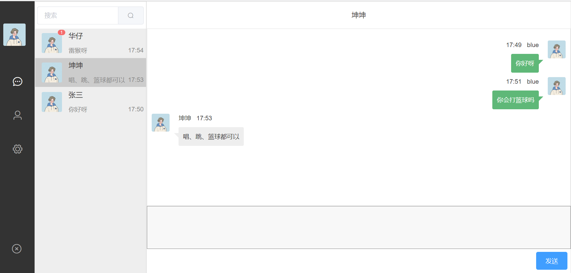 仿微信实现的网页版聊天软件,后端使用springboot+netty实现,前端使用vue。 目前是1.0.0版本,仅支持私聊文字消息,后续会陆续上线群聊、发送表情、图片等功能